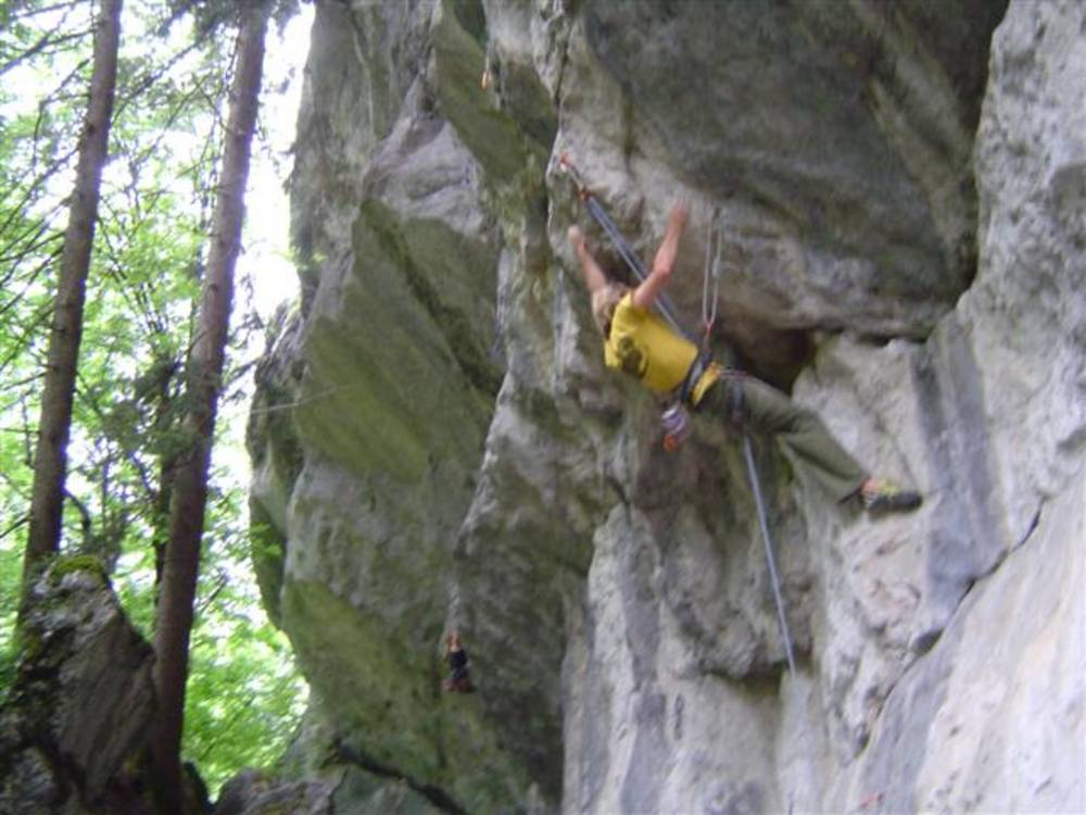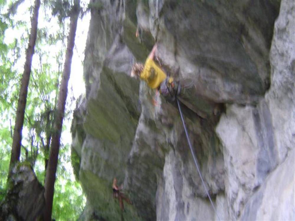 Regen,Regen,Regen das bringt doch keinen Segen! An diesem Sonntag prasselte es den ganzen Tag vom Himmel ! Und so fragte Ich Ron was man den da machen kann im Pinzgau!? Da gabs ne klare Antwort: As Göllner Dachl ! Und so packten wir unsere Sachen und Ich fand mich bald als Seil-Kraxla wieder. Ja das gefiel mir gut als Boulderer mit all den technisch ausgefuxten Routen. Von 6b aufwärts gibs da an Haufen nette Linien zum abholen. Eine "8a"holte sich Daniel mit voller Motivation nach dem er um 4Uhr Morgens vom Leischen heim kam, trotzdem noch ab ! Gratuliere und Respect ! Das musst erst mal bringen! A Wahnsinns Platzal also dieses Göllner Dach! Vom Regen spürt man da so schnell nix ! :-)