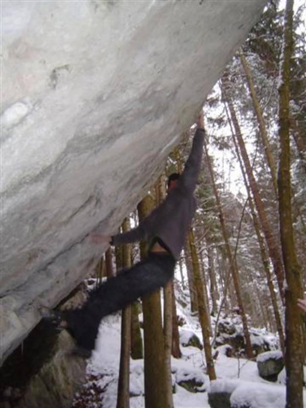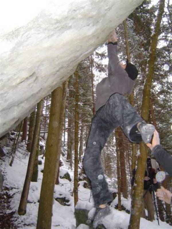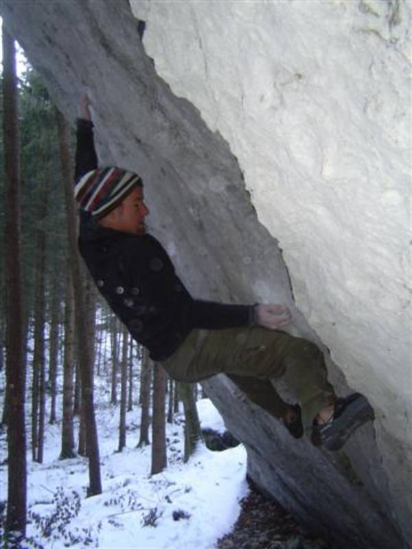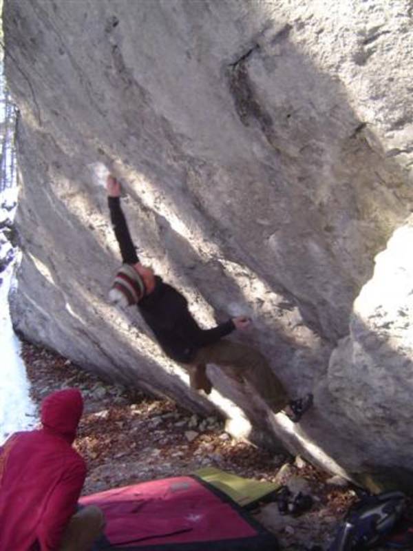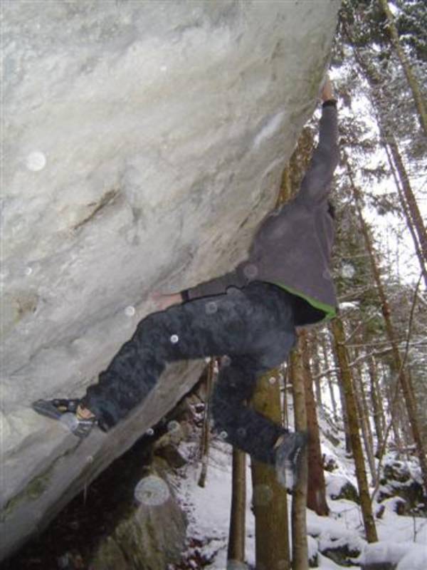 Der "Poet" prophezeit uns immer wieder neue Linien! Gerade im Winter ideal zum bouldern, dank seiner überhängenden Form. Nachdem eine starke Linie Namens "Verzwickt" von Don Bipo geklettert wurde, bastelten wir an zwei weiteren Linien uns die Finger warm. Als wir dann noch Besuch aus dem schönen Tirol bekamen, waren wir wieder um eine Begehung reicher. Dani Eder dynamisierte sich mit einer Leichtigkeit durch "To Tree ,or not to Tree"! Heisse Action an einem kalten Wintertag! :-)