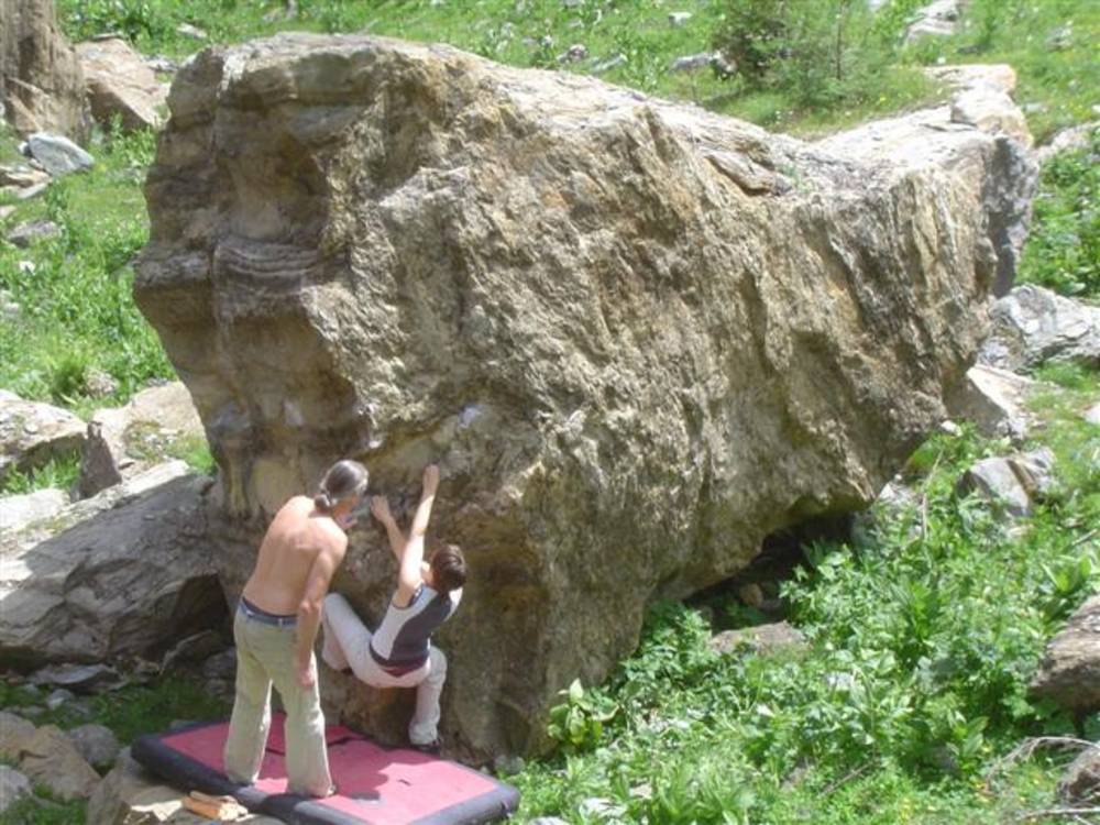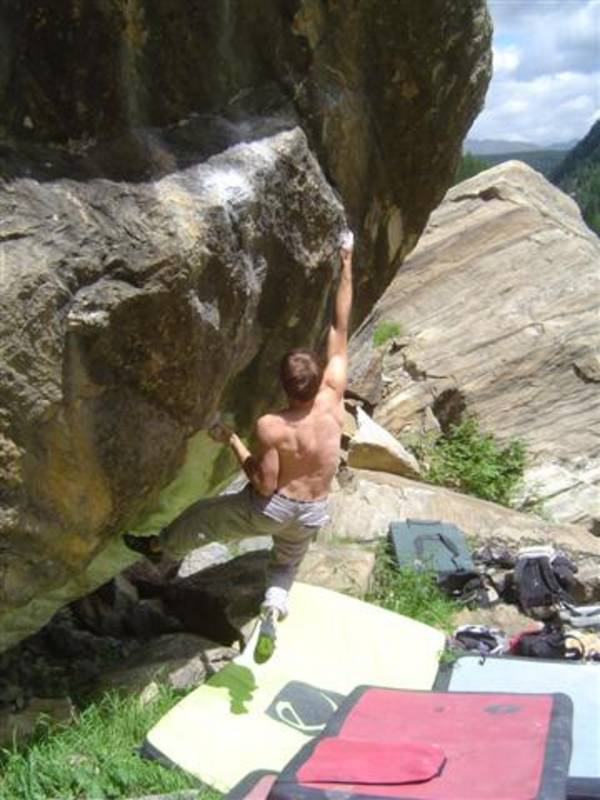 Voll bepackt mit Chrashpads genügend Motivation und Positiver Energie gings dieses Wochenende nach Osttirol. Vor einem Jahr waren Bip und ich vorort und boulderten an diesen wahnsinns Blöcken. Damals kletterten wir die die Highballs an den letzten vier Metern, die restlichen, ja doch 3m waren unter der dicken Schneeschicht noch begraben. So staunten wir nicht schlecht als wir heuer die Pracht-Exenblare im vollen Ausmaße sehen konnten.Andi,Guschi und Marita waren auch von diesem Kraft-Platz wie verzaubert und so wollten wir nix anbrennen lassen und zogen von Block zu Block und boulderten: "KKOT","Heineken","Bananastrip","Orion","No Women no Cry","LSD" und"MisteryTrain"! "MDNA"und "Flugshow" schon im Vorjahr. Wer auch immer diese Boulder geputzt benannt und bewertet haben soll,ich sage:Respect! Es sind alles Saugeile Boulder. Des is fix! Und wir hatten einen saugeilen Boulder-Tag :-) des is a fix!