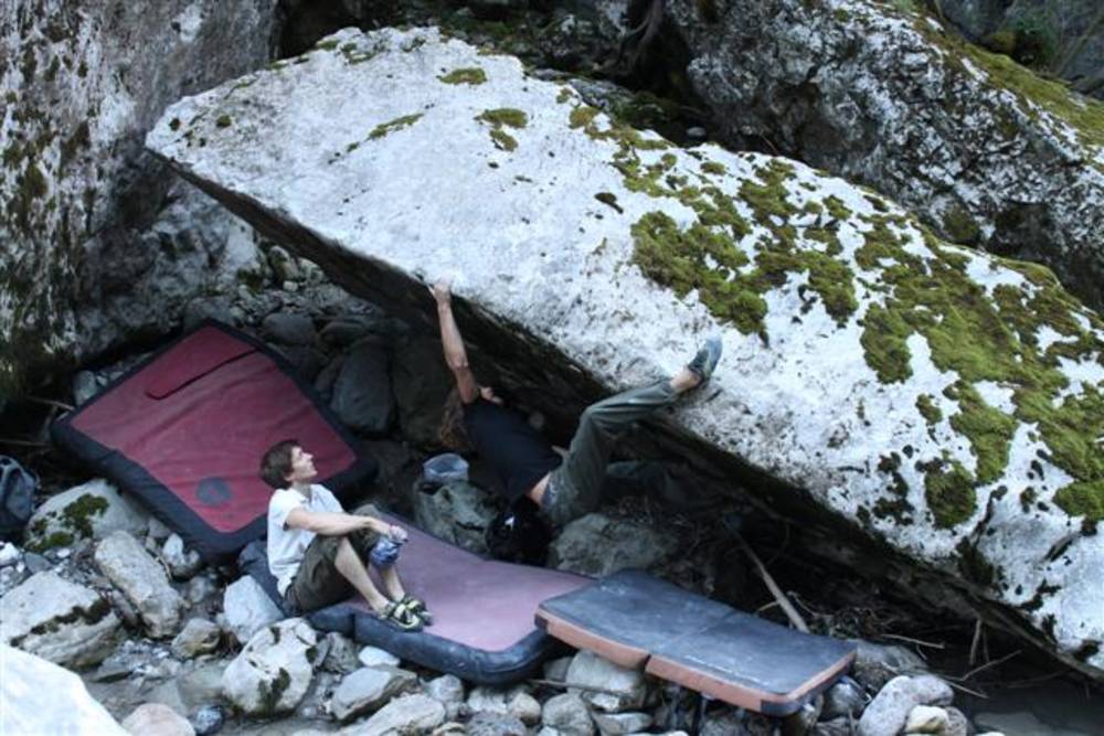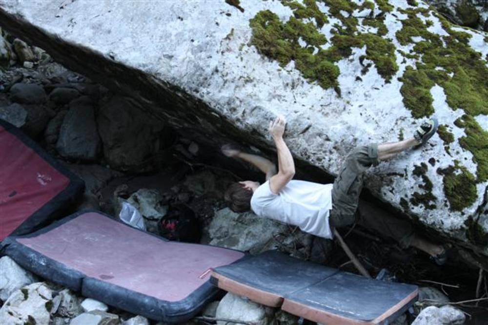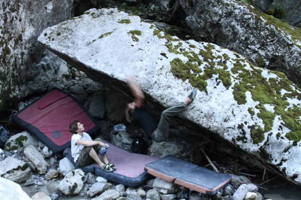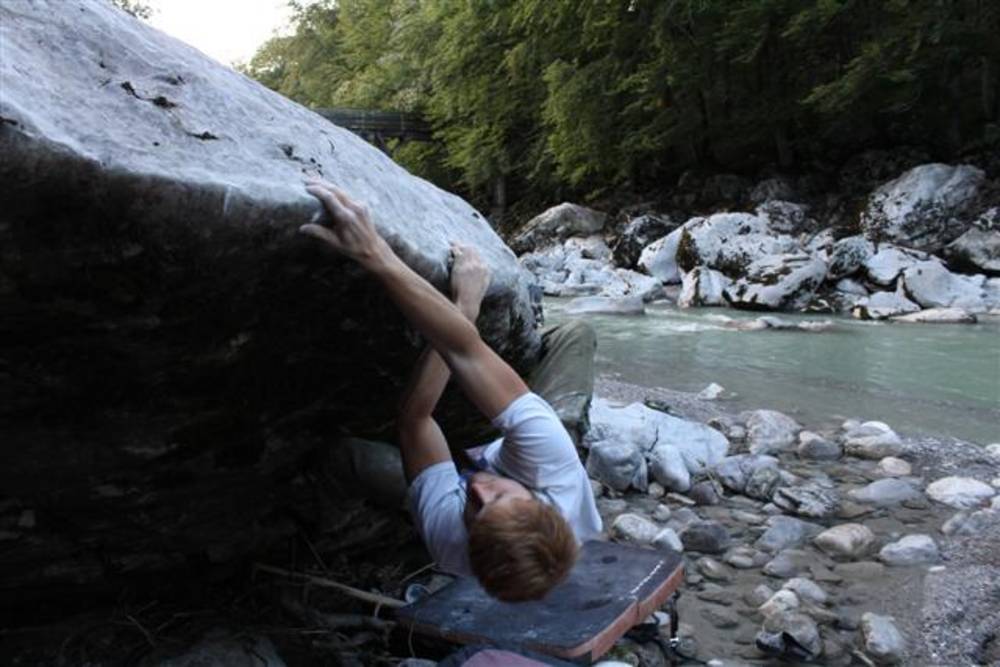 Vor ungefähr 5 Jahren wurde diese Slopertraverse von Hias M. ausgegraben. Schon damals gab es nur eine bestimmte Zeit diesen Boulder zu klettern. Ja damit meine ich den Herbst,den nur in dieser Jahreszeit steht der Wassersstand in der Saalach so tief das es am Moorsand entlang ideal wird zum bouldern. Vor kurzer Zeit nun fanden einige motivierte Boulderer wieder gefallen daran :-) Allem voran Herr Heinzl der zusammen mit Andi R. diesen Wahnsinns-Boulder wieder vom Schmutz der Saalach befreite. Er war auch der jenige der die erste Wiederholung nach langem meistern konnte. Gratulations! Dazu kam auch noch eine Direct Version von Andi die mit einem coolen Dyno für viel Spaß sorgt. Wir konnten zusammen an diesem Abend alle diesen ins Auge stechenden Block :-)Namens Excalibur klettern. Wie schön is der Herbst!?
