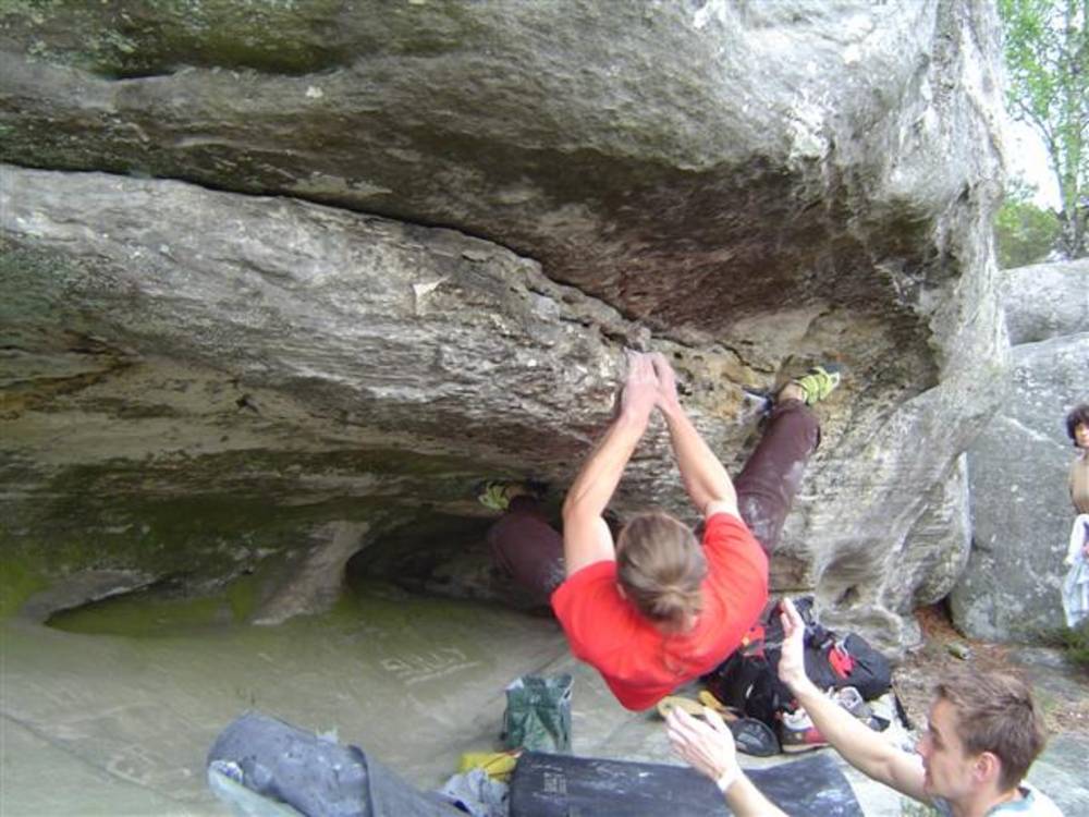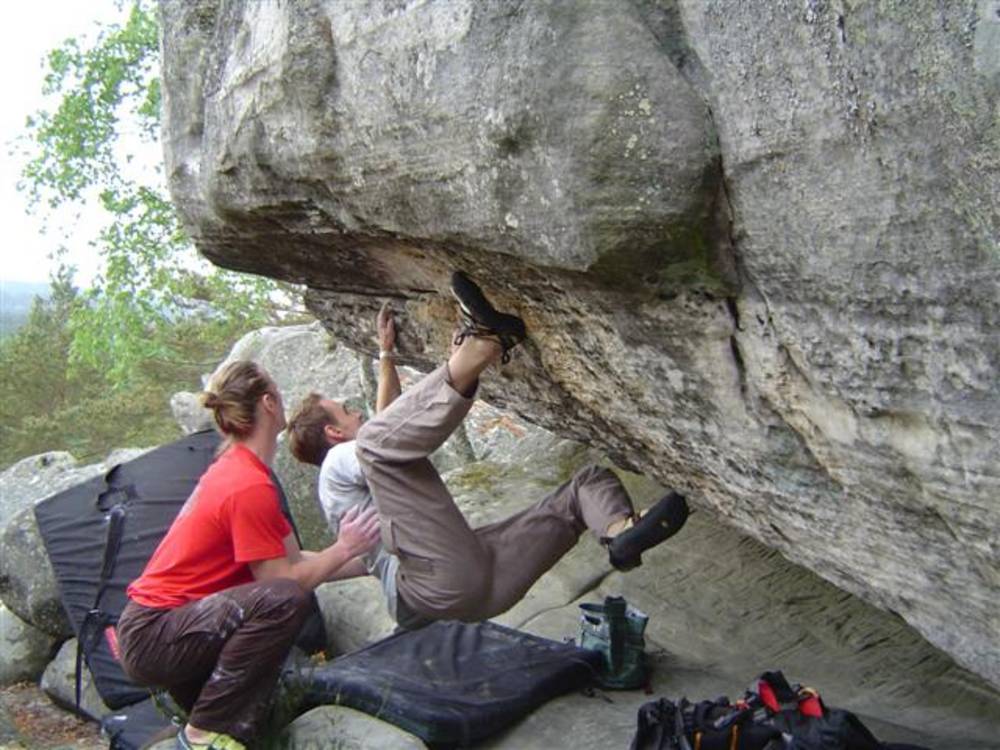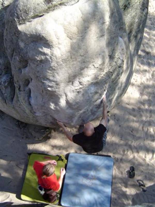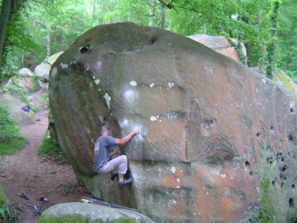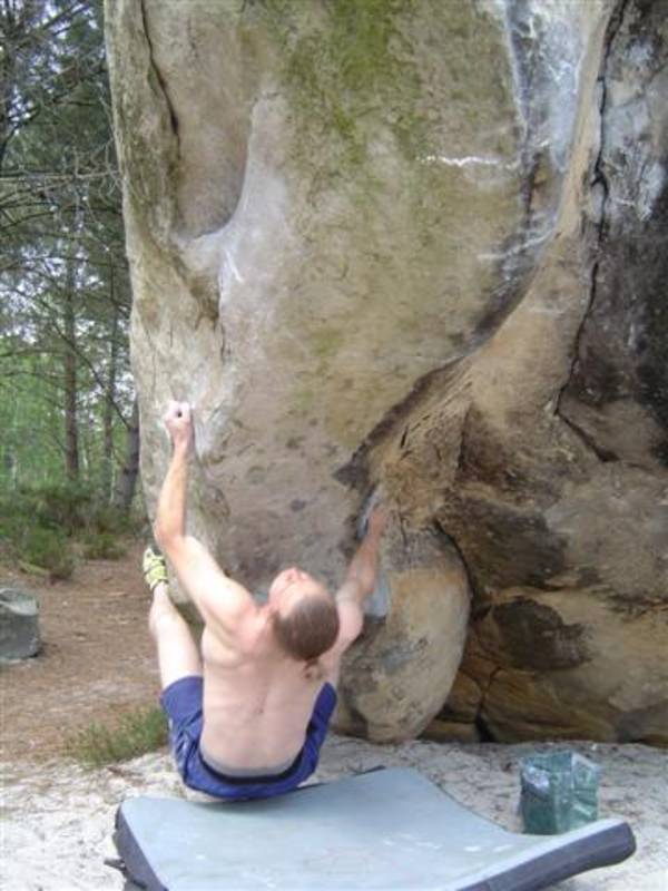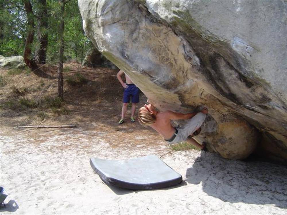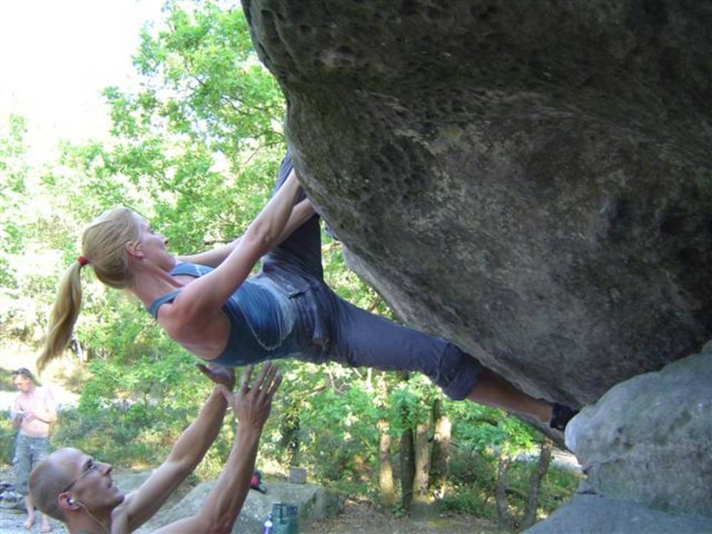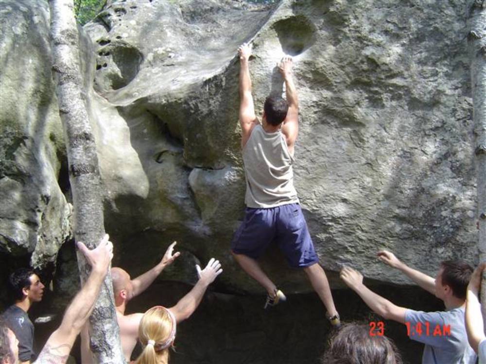 Bleau! Was soll man da noch sagen. Am ersten Tag fehlten mir die Worte als ich im Gebiet`le elephant`stand und diese Wahnsinns Blöcke sah! Überall Sand und ein Meer aus Sandsteinen! Einzigartig dieser Grip am Fels. Fantasie anregende Blöcke die dich an Elefanten,Schildgröten,Fische oder an einen Schweizer Kas erinnern. Zwei Wochen lang waren wir : Ein Team aus gut 11 Leuten, top motiviert und besuchten die schönsten Gebiete. Natürlich musste man einige Klassiker die man aus Videos kennt mal antesten. Antesten ja,den wo sich Graham,Lamprecht,Fred Nicol,Klem und wie sie alle heissen reinhängen is ja schon dann a 8 ter oder mehr notiert.`Duell´`Big Dragon``Hale Bop`und wie sie alle heissen. Geniale Routen! Ich dagegen war überglücklich als ich mir am zweiten Tag mein ersten 7a Boulder abholen konnte! `to Bip or not to bip´werd Ich nie vergessen. Ja jeder fand sich so seine lieblings Route in Bleau, ist ja auch nicht schwer bei über 15000 Boulder ! So sag Ich jeder der gern bouldert muss dort mal hin! `Sakre Bleau`Bitte seids so nett! Schauts eich des oh!