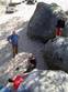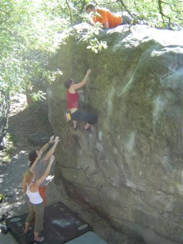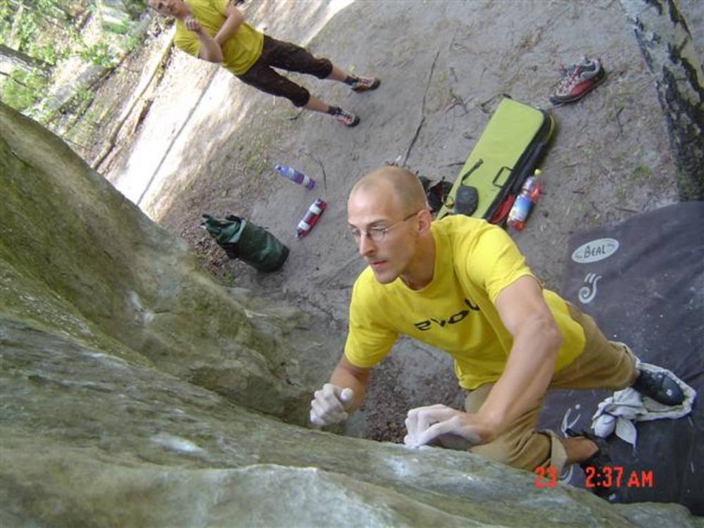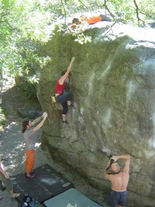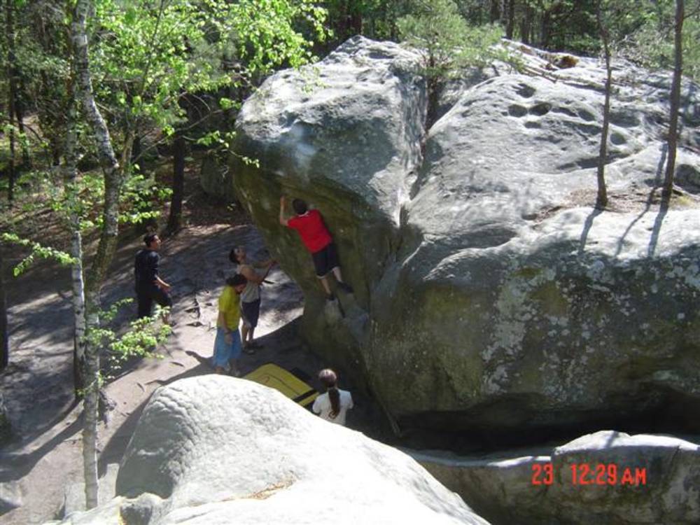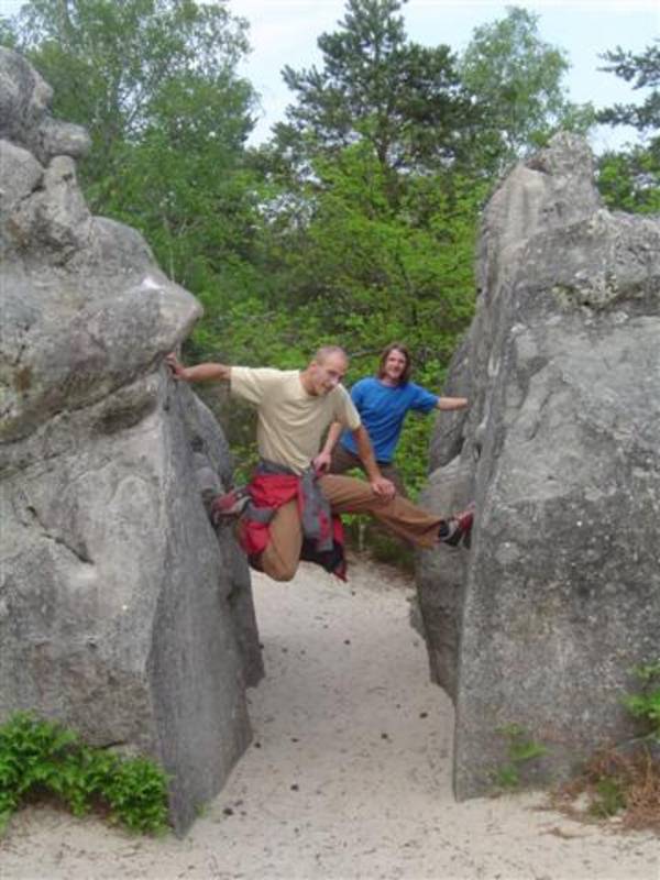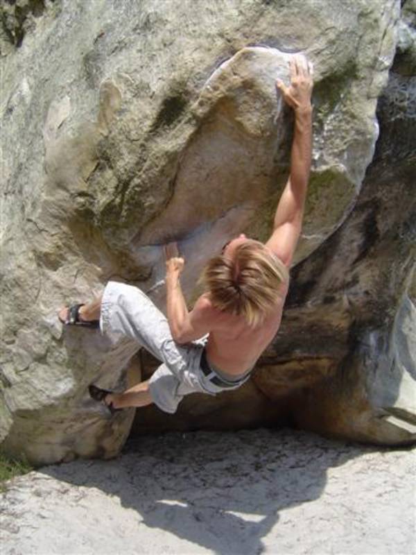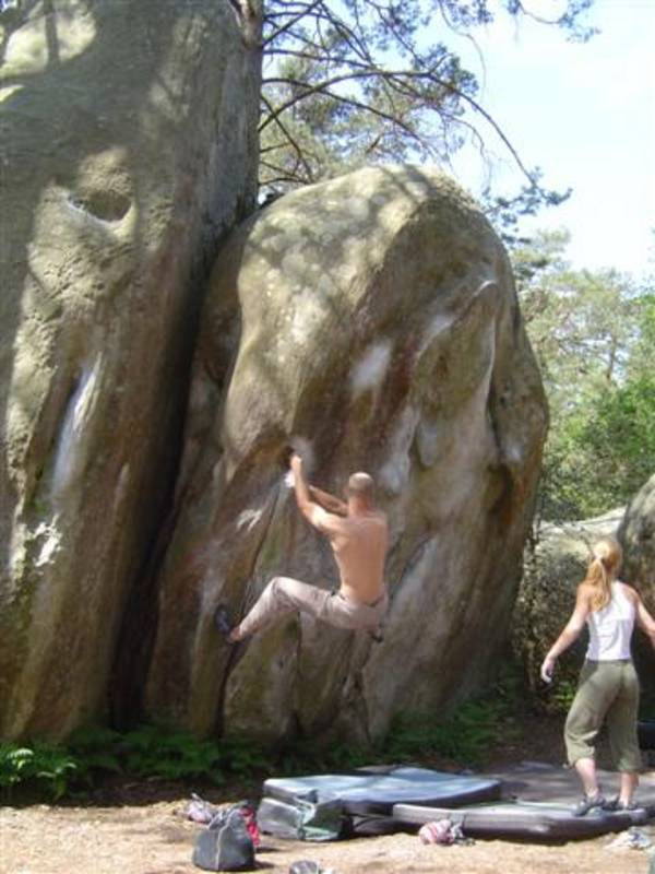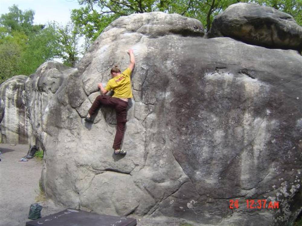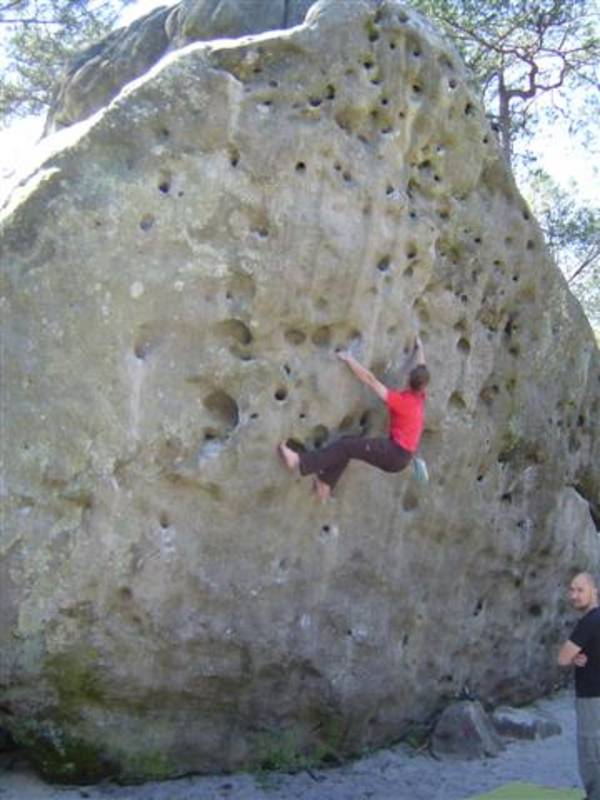 Bleau! Was soll man da noch sagen. Am ersten Tag fehlten mir die Worte als ich im Gebiet`le elephant`stand und diese Wahnsinns Blöcke sah! Überall Sand und ein Meer aus Sandsteinen! Einzigartig dieser Grip am Fels. Fantasie anregende Blöcke die dich an Elefanten,Schildgröten,Fische oder an einen Schweizer Kas erinnern. Zwei Wochen lang waren wir : Ein Team aus gut 11 Leuten, top motiviert und besuchten die schönsten Gebiete. Natürlich musste man einige Klassiker die man aus Videos kennt mal antesten. Antesten ja,den wo sich Graham,Lamprecht,Fred Nicol,Klem und wie sie alle heissen reinhängen is ja schon dann a 8 ter oder mehr notiert.`Duell´`Big Dragon``Hale Bop`und wie sie alle heissen. Geniale Routen! Ich dagegen war überglücklich als ich mir am zweiten Tag mein ersten 7a Boulder abholen konnte! `to Bip or not to bip´werd Ich nie vergessen. Ja jeder fand sich so seine lieblings Route in Bleau, ist ja auch nicht schwer bei über 15000 Boulder ! So sag Ich jeder der gern bouldert muss dort mal hin! `Sakre Bleau`Bitte seids so nett! Schauts eich des oh!