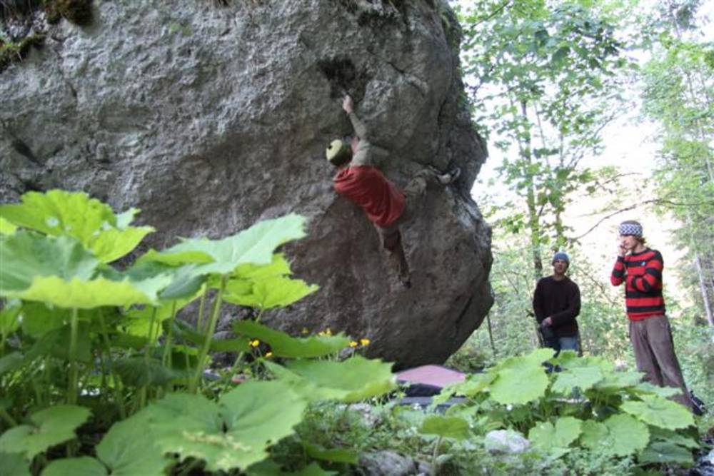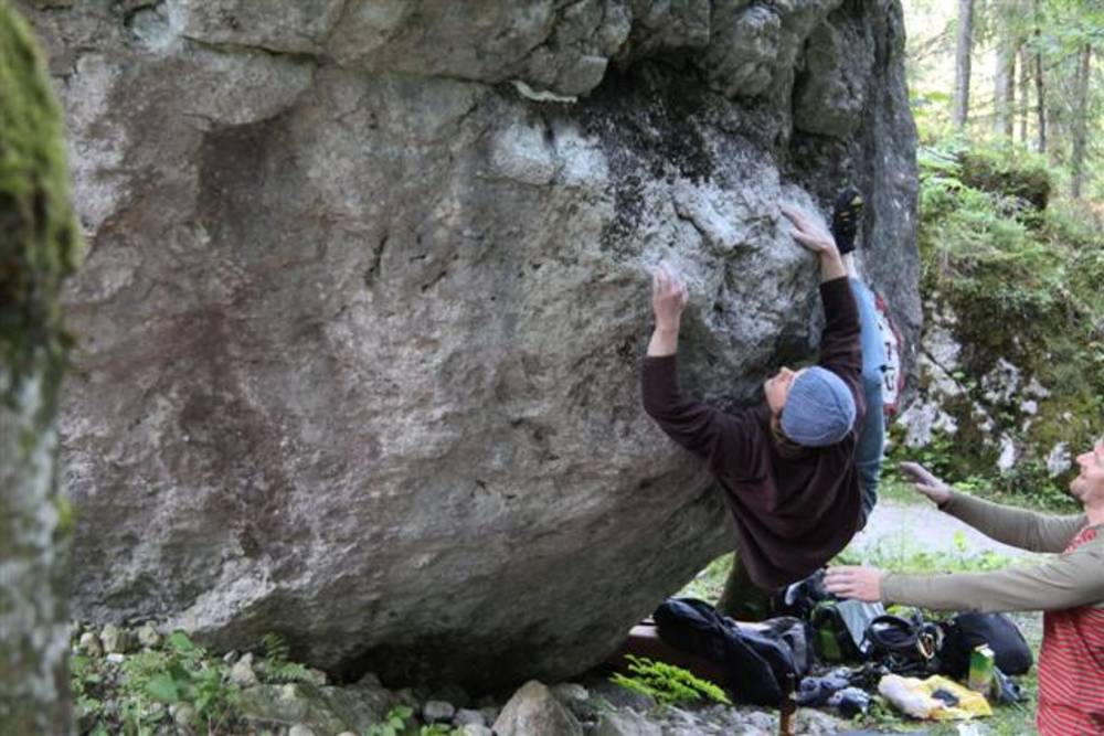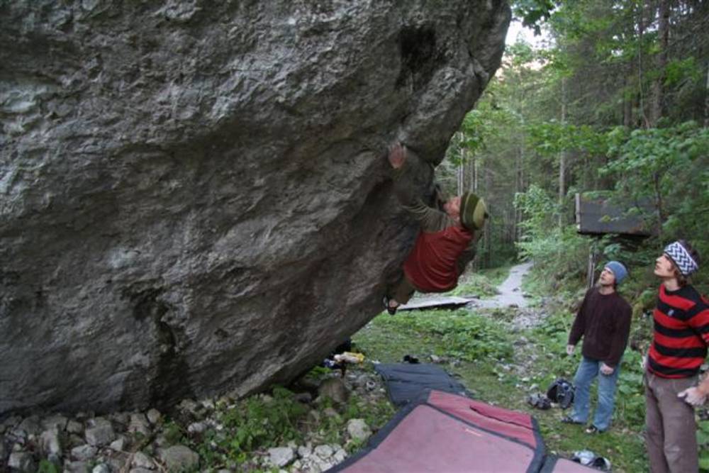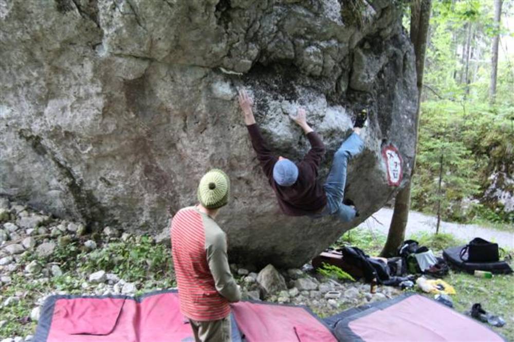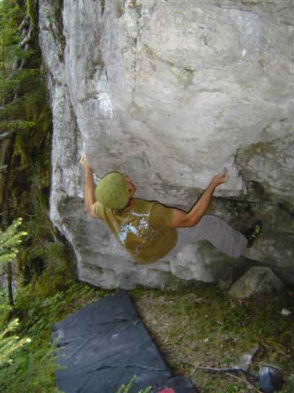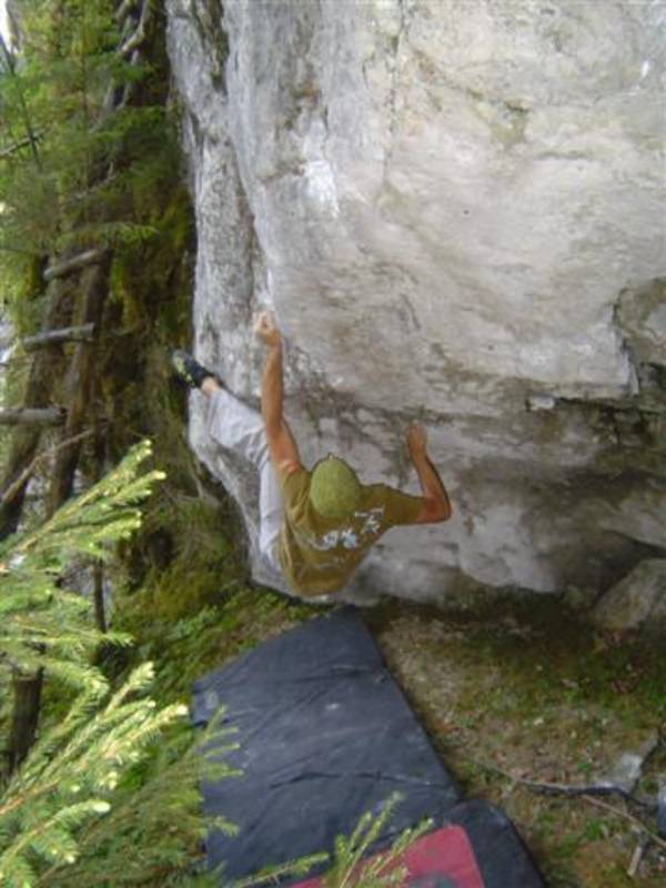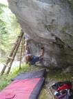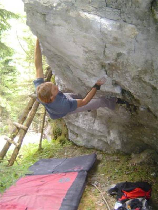 Nachdem die Traverse "x 7/u" 7b für mich nun Geschichte ist,hab ich mir gleich die nächste geile Linie aufgerissen. "No Pain no Game" wird das gute Teil heissen,denn es geht sicherlich keiner unversehrt von diesem Boulder. Auch Bip konnte ich diesen Boulder schmackhaft machen. Und so bastelten wir an einem Abend intensivst und sind uns ziemlich sicher das Ding beim nächsten mal zu rocken. Jaja das Kirchertal wird uns wohl noch einige Zeit beschäftigen. :-)